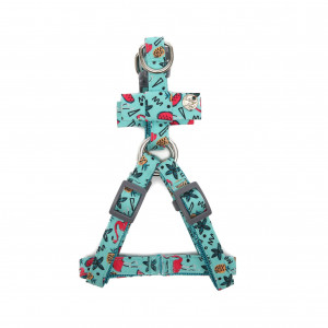 Шлейка для собак и кошек Cutie Pie с поводком, M голубой с рисунком